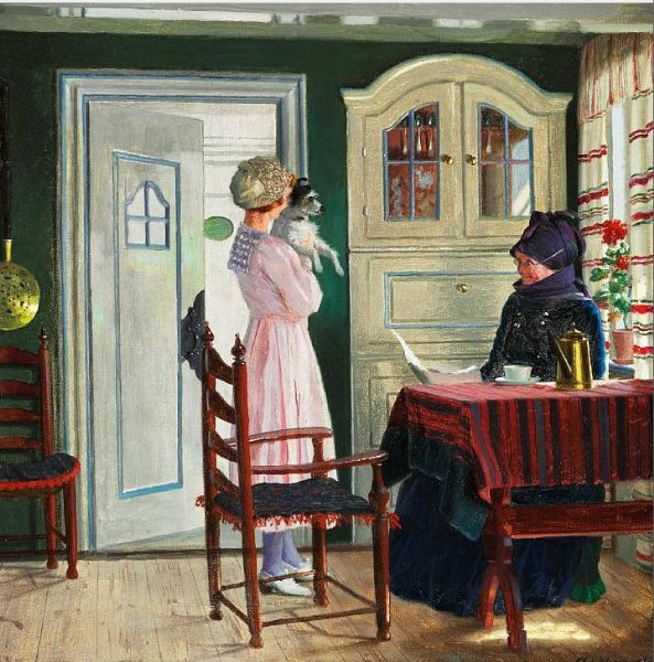 | Interior from the island of Fanø with a young lady visiting a local woman. | |