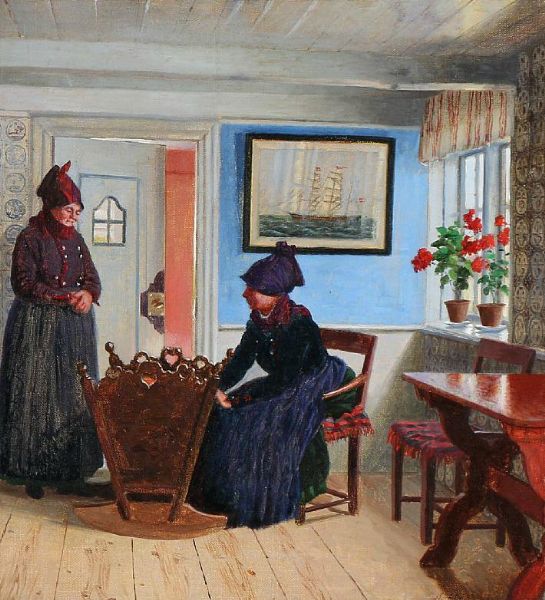 | Interior from the island of Fanø with two local women at a cradle. | |
