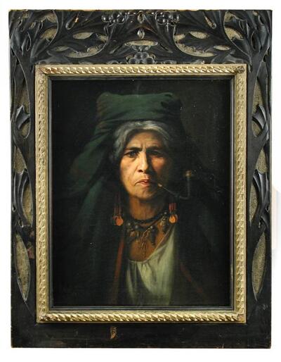 | A native American woman smoking a pipe, and wearing tribal jewellery | |