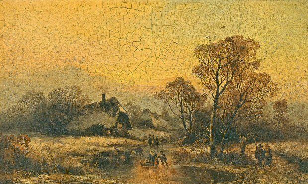 | Eisvergnügen in abendlicher Winterlandschaft mit malerischen Häusern | |