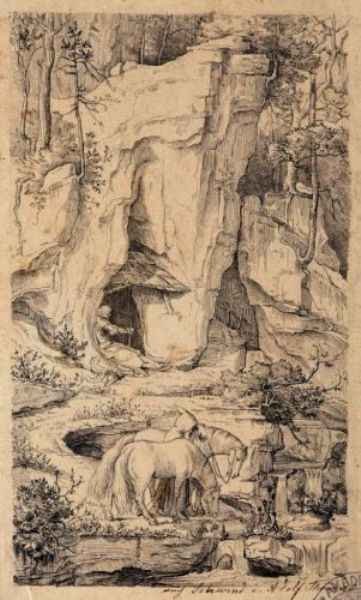 | Ein Einsiedler führ Rosse zur Tränke" /"Die Burgruine auf dem schroffen Felsen" | |