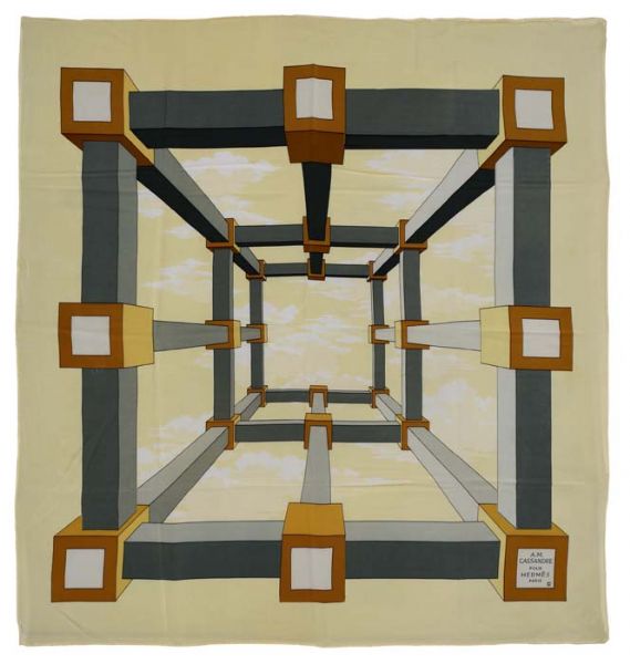 | 2 HERMES SILK SCARVES (Pink and Yellow). 1951. | |