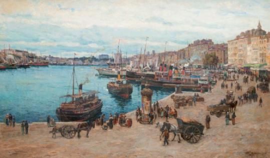 | Vue du Vieux-Port de Marseille très animée prise du quai des Belges | |