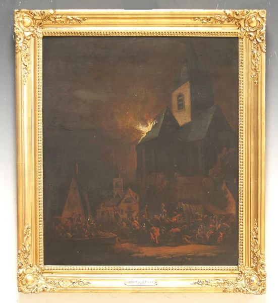 ''Nächtlicher Brand einer von Kriegern besetzten Stadt''