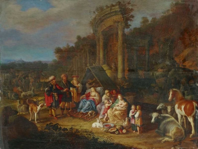 RAHEL AUF DEN VERBORGENEN GÖTZENBILDERN IHRES VATERS SITZEND
