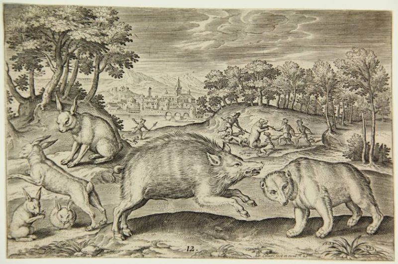 Four hares, a wild boar and a bear