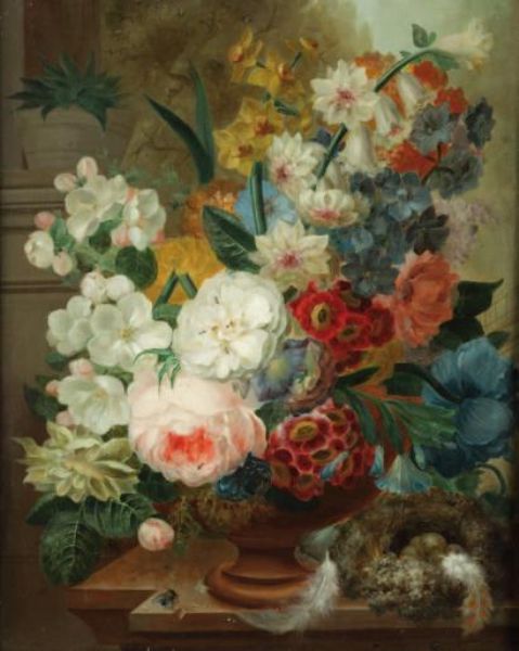 Bouquet de fleurs sur un entablement