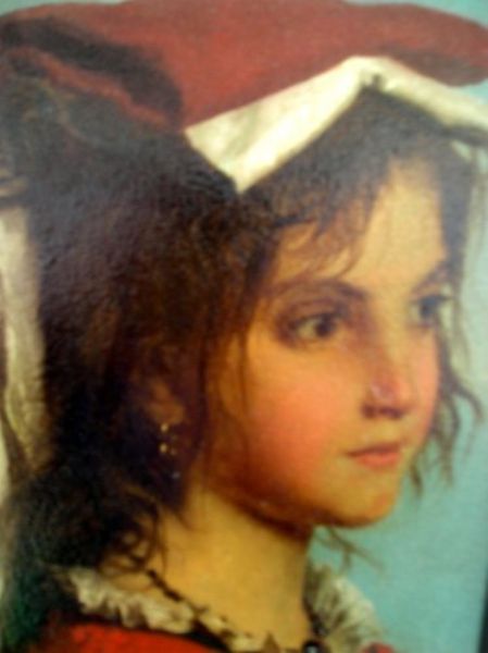 | Head and shoulder portrait of a young girl wearing a red dress | |