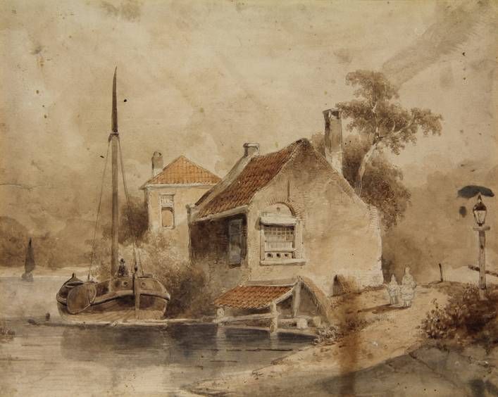 | View of a house on the banks of a river | |