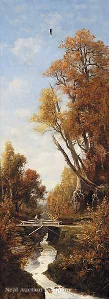 Pecheur sur un Pont dans le Foret de Fontainebleu
