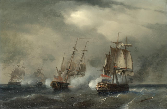 | The British frigates Flora and Crescent in action with two Dutch frigates west of Cape Spartel, Morocco, 30th May 1781 | |