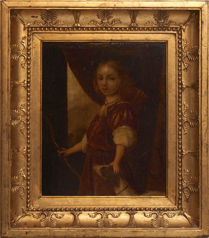 Dreiviertelsportrait eines höfisch gekleideten Knaben mit Köcher und Bogen