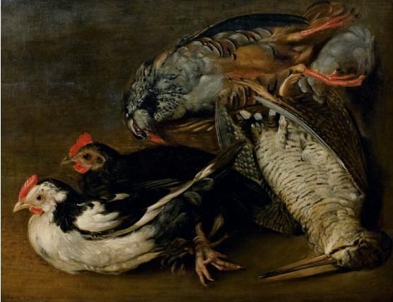| Nature morte à la bécasse et au perdreau rouge avec deux poules | |