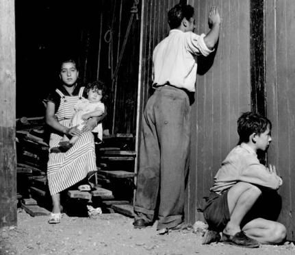 Femme et enfants a l'exterieur du cirque, a Montreuil