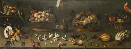 | Still Life with Fruits, Vegetables, Wine and Birds | |