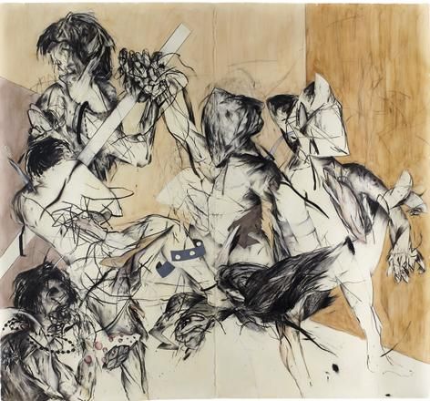 | Charcoal pastel, gouache, graphite and acrylic on paper | |