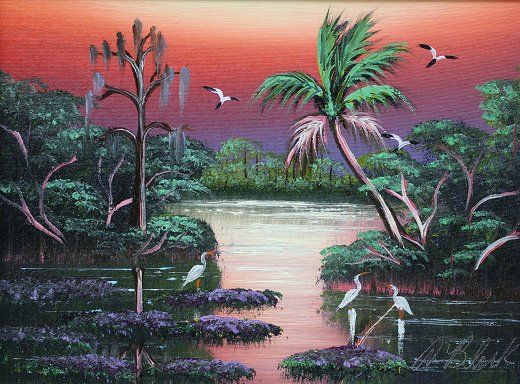 Florida Highwaymen backwaters scene with birds