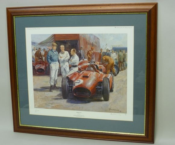 The Rivals, men chatting in a pit stop, and COMPANION, Fangio Racing Cars, on a spectator circuit