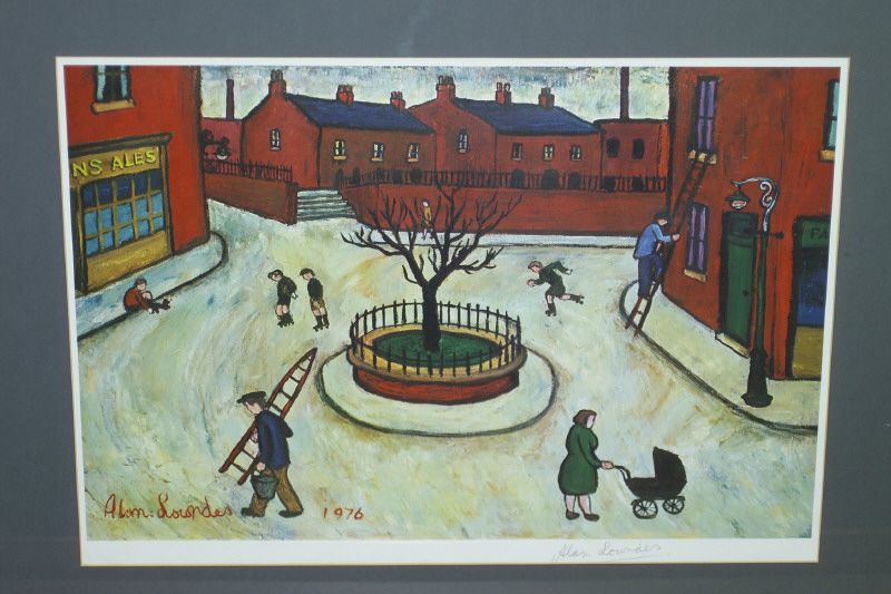 | Northern Street Scene with Window Cleaners and Boys on Roller Skates Nearby | |