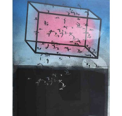 Aquatint etching, framed