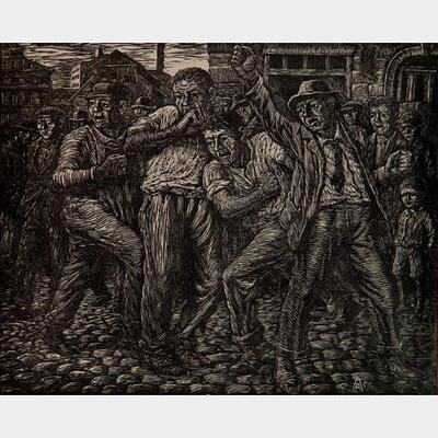 ''The Strike''- wood engraving, signed in pencil, minor tears around edges in margins otherwise good condition. 12 x 9 3/4'' | |