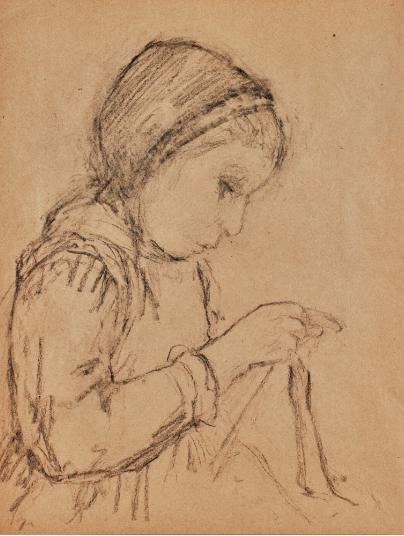 MÄDCHEN BEIM STRICKEN, NACH RECHTS