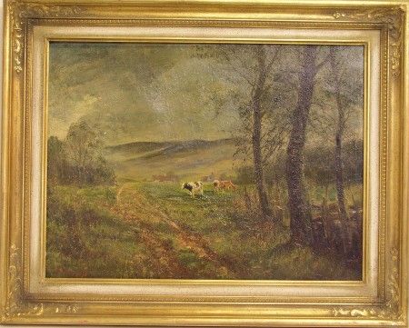 Landschaftsbild mit weidenden Kühen