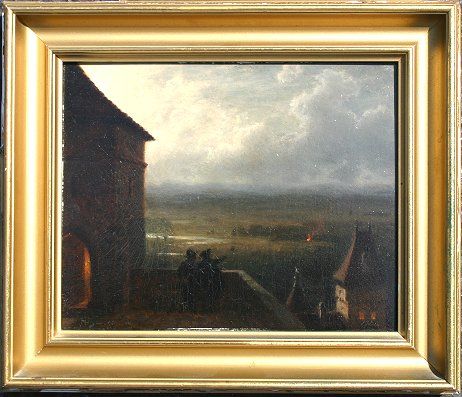 2 Figures Looking Over Battle Encampment From the Safety of the Fortress Walls