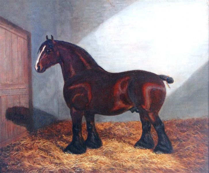 A shire horse in its stable