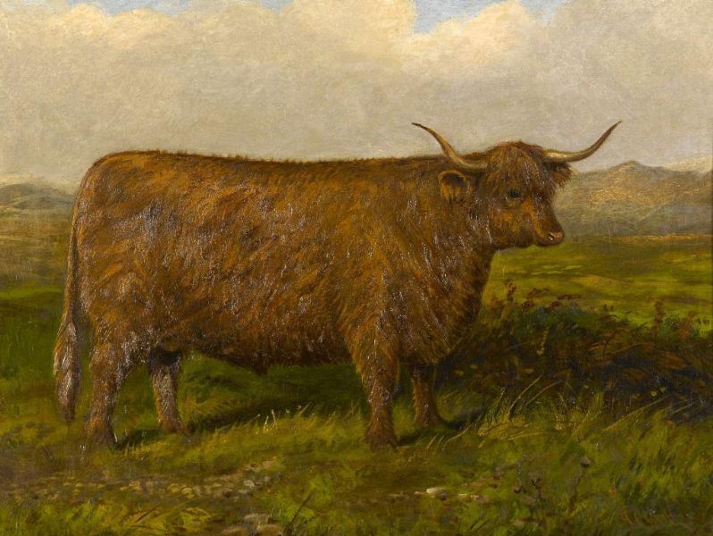 PORTRAIT OF A HIGHLAND BULL IN A LANDSCAPE
