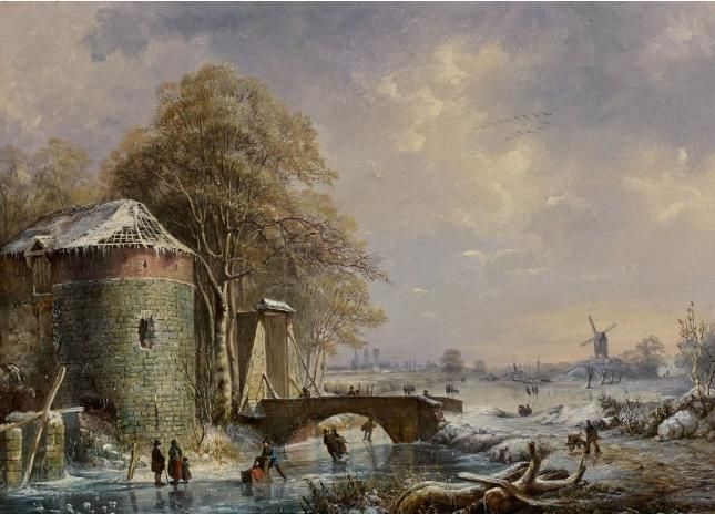Patineurs sur une rivière gelée