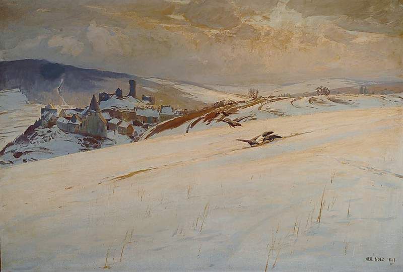 erschneite Eifellandschaft mit Blick auf Burg Altenahr