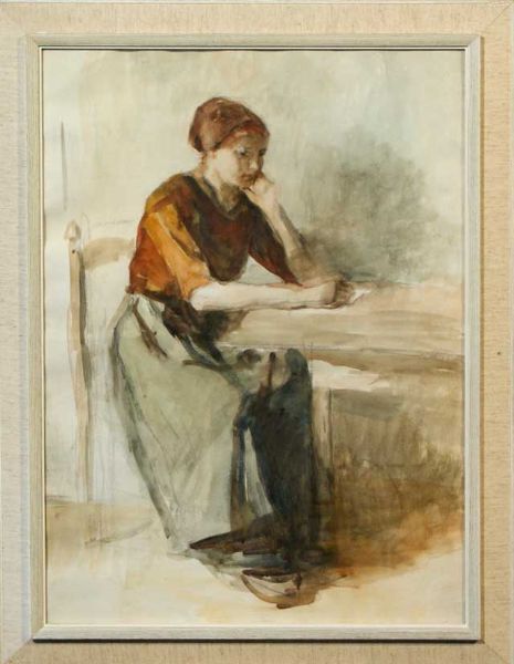 Pensive girl at table