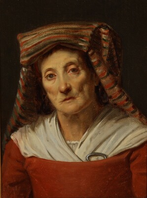 | Italian woman in a red dress and a striped headdress | |