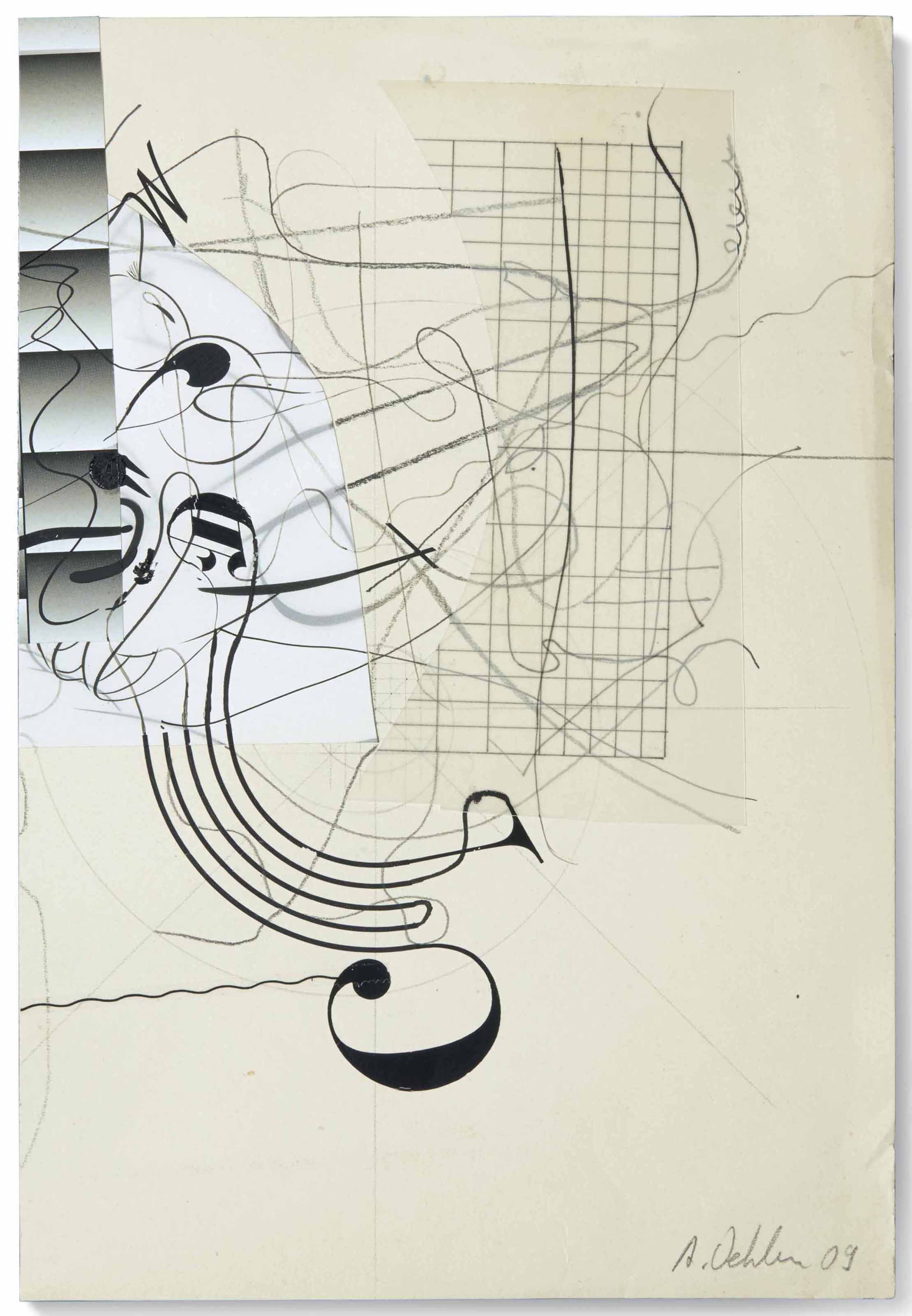 Ink mine de plomb et collage sur papier