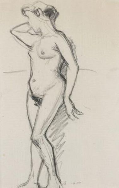 NU DEBOUT, BRAS DROIT DERRIERE LA NUQUE