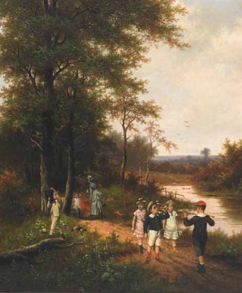 CHILDREN PLAYING ALONG A RIVERSIDE PATH
