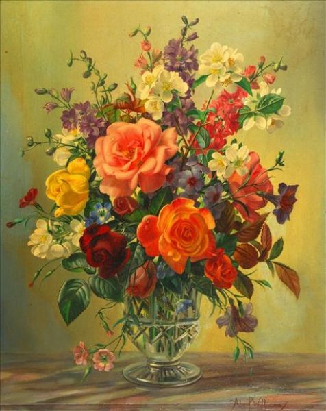 Still life of summer flowers in a cut glass vase