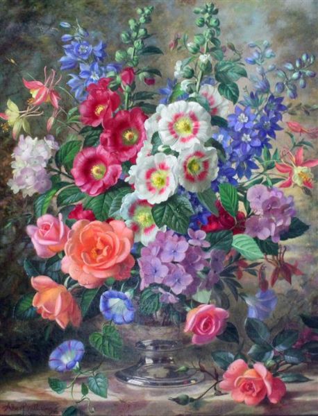 Summer flowers in a silver bowl