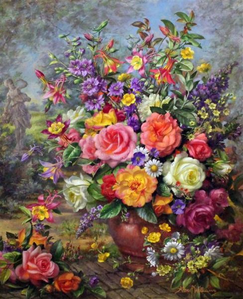 Summer Flowers with a statue beyond