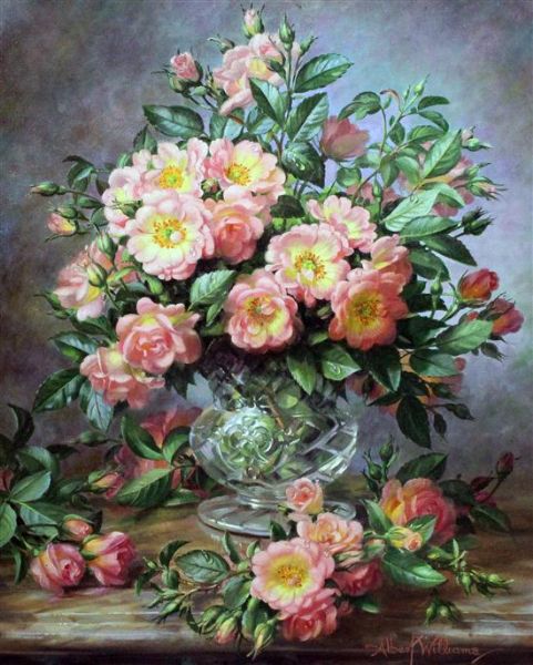 Wild roses in a cut glass vase