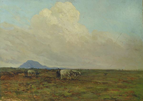 BOVI AL LAVORO NELLA CAMPAGNA ROMANA CON MONTE SORATTE