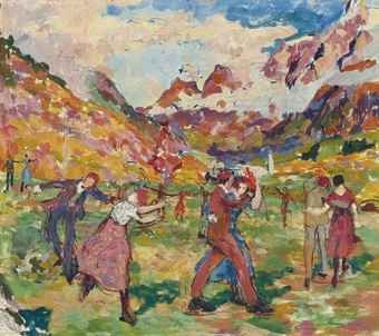 | Frühlingstanz bei Stampa, um 1922 (Ronde de couples dans un pré près de Stampa) | |