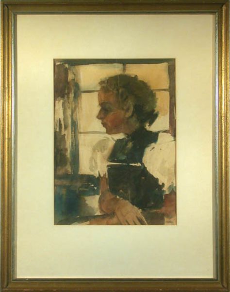 Profilportrait eines Mädchens in Glottertäler Tracht, an einem Fenster sitzend