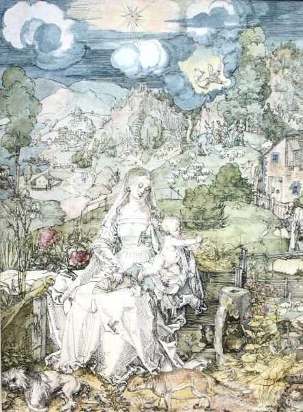 | Mother and child in open landscape with tethered fox in foreground and "Mother and child with cherub musicians in foreground" | |