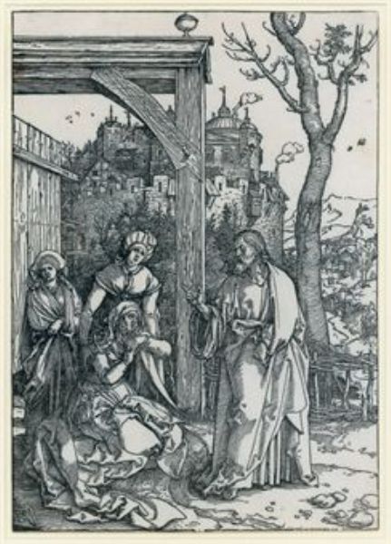 | Christ taking leave of his Mother, plate 17 from: The Life of the Virgin (Bartsch 92; Hollstein, Meder 204) | |