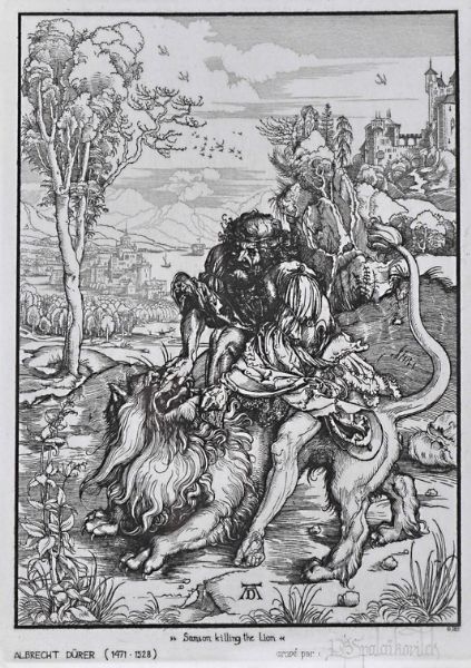 Samson killing the lion" de la série "Hommage aux Maîtres