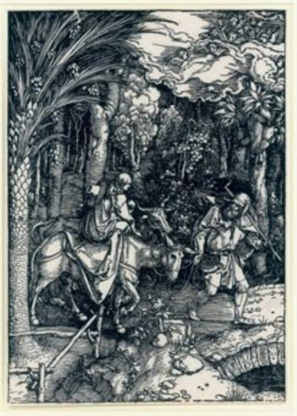 | The Flight into Egypt, plate 14 from: The Life of the Virgin (Bartsch 89; Hollstein, Meder 201) | |