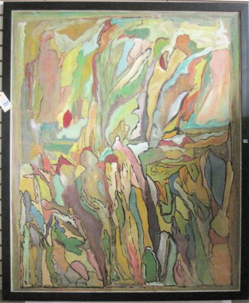 | A colorful abstract with several figural representation. Indistinguishable title verso and a quote mentioning "elan vital Bergso | |