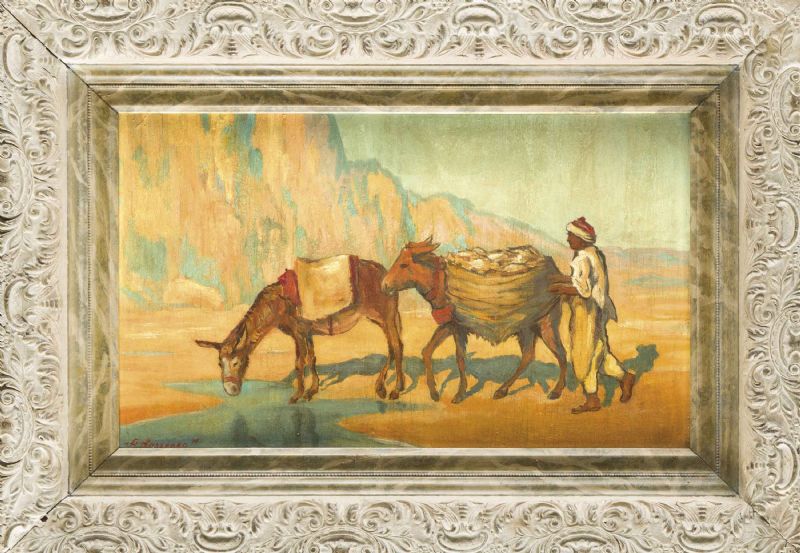 ukrainischer Orientmaler, Araber mit Maultieren an der Tränke